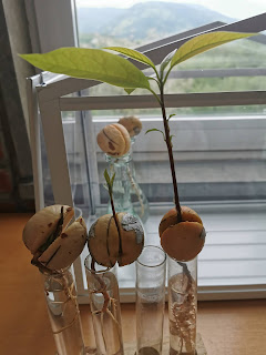 Egia esan, hasieran ez zitzaizkigun atera, baina proba asko egin ondoren, udaberriarekin batera hezurrak ernatzen hasi ziren. Aurrena, hezurrak erdibitu egin dira, ondoren, sustrai txikia atera zaie eta hauek uretan jarri ostean, landarearen zurtoina eta honekin batera hostoak ateratzen joan zaizkie. Argazkietan aguakateak prozesu ezberdinetan ikus ditzakezue.